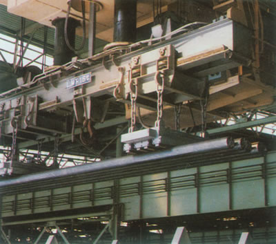 電磁鐵的磁極內裝有可動磁極塊,在與被吸物接觸后能自由伸縮,可得到相對很大的接觸面積,適用于起吊多根高低參差不齊的初軋坯、管坯以及交錯排列的鑄錠。
